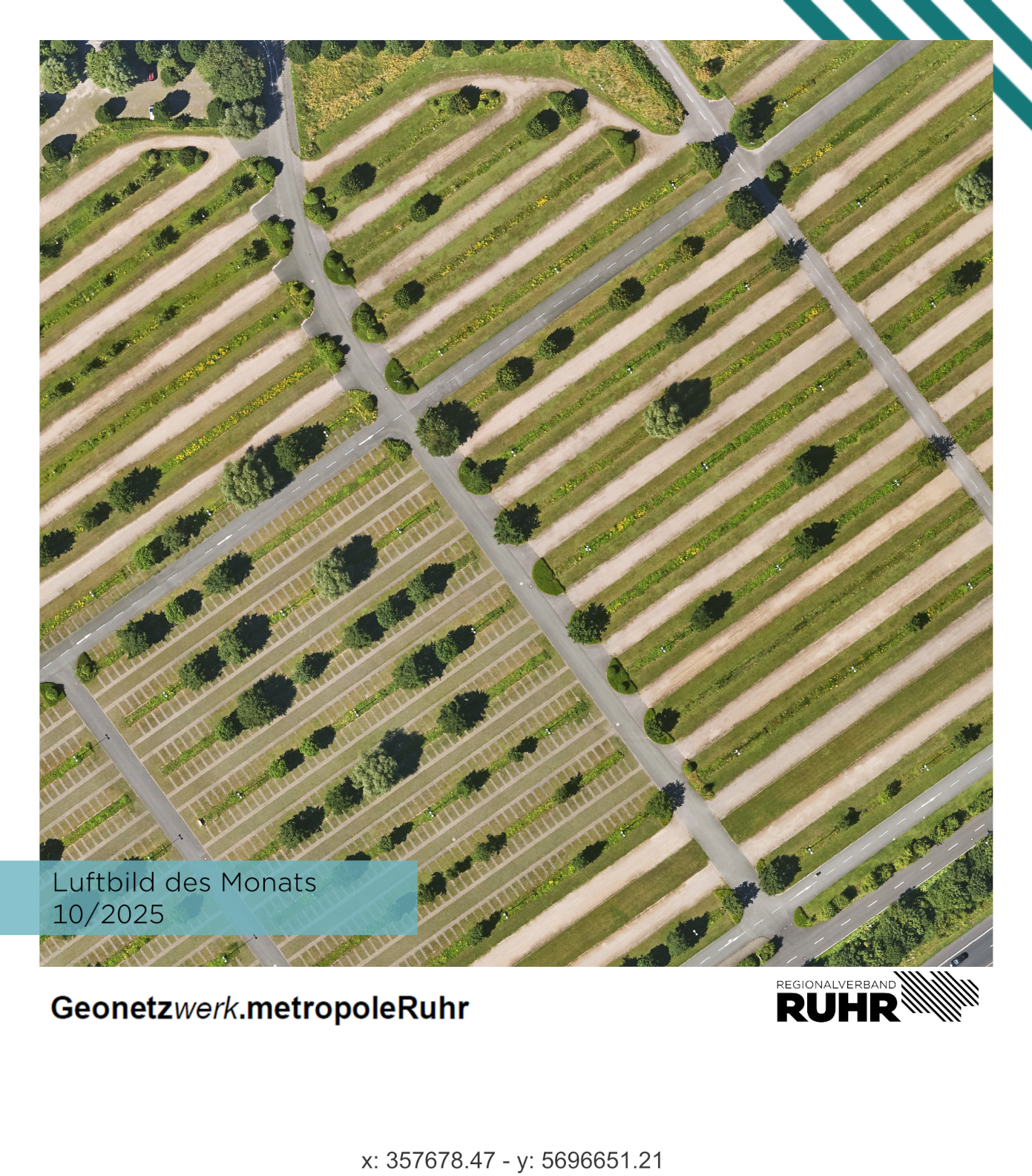 Seit 2017 erfolgt im Rahmen der Luftbildkooperation im Geonetzwerk.metropoleRuhr jährlich eine verbandsweit einheitliche Befliegung. Neben hochauflösenden Nadiraufnahmen werden mittlerweile auch Schrägluftbilder und weitere Folgeprodukte, wie z.B. ein 3D-Mesh umgesetzt.